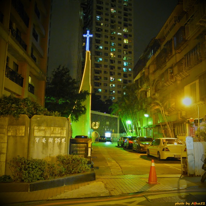 Beautiful stained glass windows tell the story of God's redemption, created by two German artists: Walter Klocke and O. Peters. These stained glass windows are unique for the whole of Taiwan. The mosaic of the Holy Trinity at the top right wall behind the altar was created by Paul Edzard Seeger, and produced in Munich, Germany.